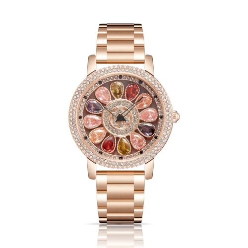 ORSGA Women Watches Flora Watch for Women's Multicolor Diamond Rotating Dial Rose Gold Ladies Wrist Analog Watch for Women