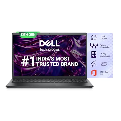 Dell 15 Thin & Light Laptop, 13th Gen Intel Core i3-1305U Processor, 8GB DDR4, 512GB SSD, 15.6" (39.62cm) FHD 120Hz 250 nits, Intel UHD Graphics, Windows 11 + MSO'21, 15 Months McAfee, Black, 1.66kg