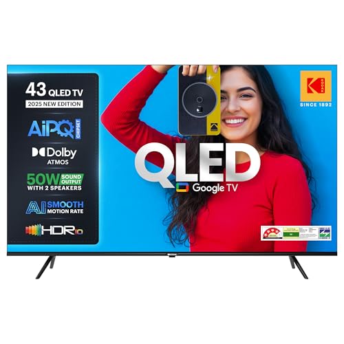 Buy NowThe Kodak 43-Inch Matrix Series 4K QLED Smart TV is equipped with HDR10 and has a bright peak of 550 nits for vivid colour reproduction. It features an excellent audio experience with 50 watts of audio power and both Dolby Atmos as well as DTS TruSurround support. The Kodak 43-Inch Matrix Series 4K QLED Smart TV comes with the Google TV platform, has 2GB of RAM and 16GB of internal storage, and can stream smoothly with a dual-band Wi-Fi connection. The multiple connection options for this model make it perfect for use as an entertainment device and gaming console.