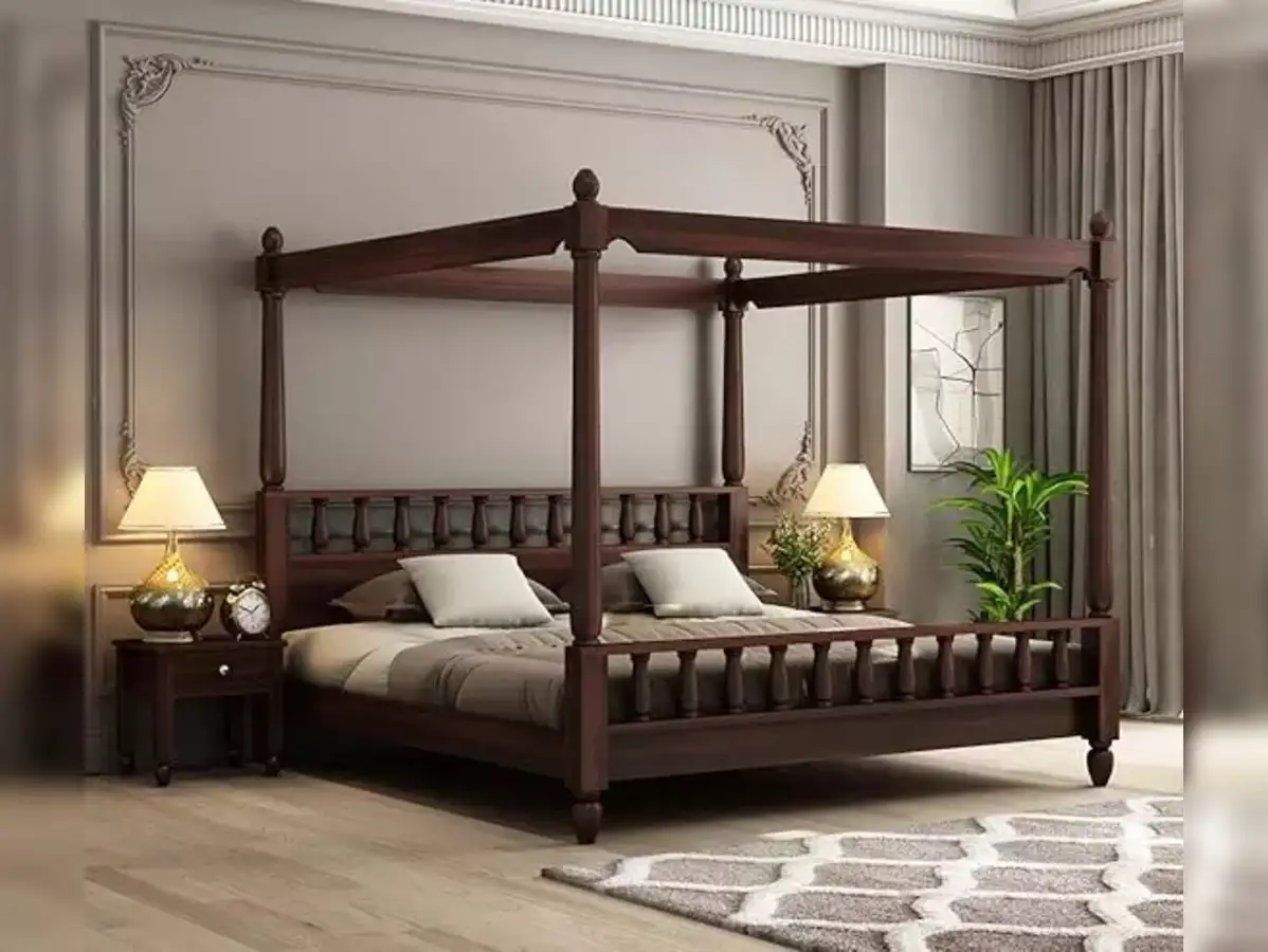 The first suggestion on the list is the Furniseworlds Sheesham Wood King Size Poster Bed Wooden Double Bed Cot Bed. It features a solid Sheesham wood construction that ensures durability and a classic look. Its elegant and vintage design complements a range of interior styles and would surely look great with yours. The best part about this bed is that it is termite free that provides added and much needed assurance of longevity.