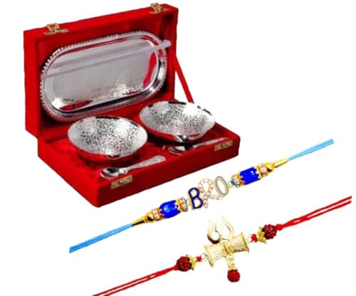 JAIPUR ACE Set of 2 Rakhi with Silver Plated Bowl Set Gift Hamper | RakshaBandhan Rakhi Gift Hamper for Brother Bro Bhaiya