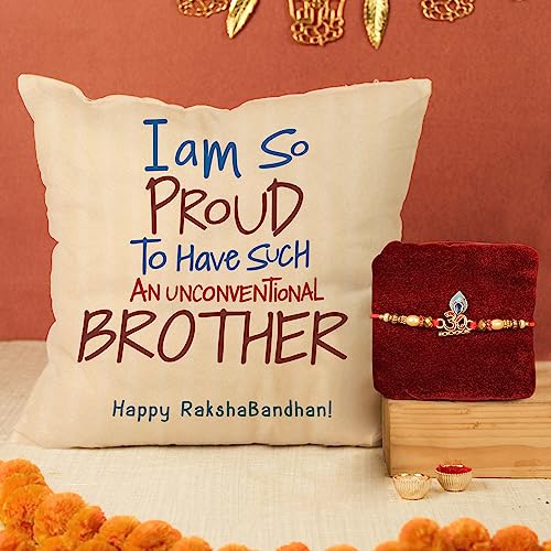 TIED RIBBONS Rakhi Gift for Brother - Premium Rakhi with Rakshabandhan Cushion with Filler Mini Greeting Card- Rakhi for Brother