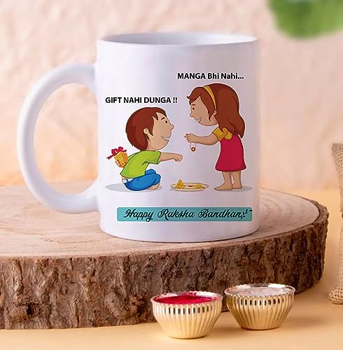 The Purple Tree Ceramic Rakshabandhan Rakhi Gift Mug for Sister and Brother (330 ml, Pack of 1) - Gift for Siblings, White
