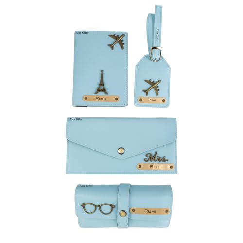 The AICA Customised Name & Charm Gift Set for Women is a standout choice among personalized gifts for brides, offering both elegance and everyday practicality. This beautifully curated 4-piece combo includes a wallet, passport cover, sunglass case, and bag tag, each customizable with the bride’s name and a metal charm, making it a truly one-of-a-kind present. With multiple colour options and premium craftsmanship, it’s not just stylish but also a useful gift for the bride as she steps into new journeys, travels, and daily routines. Thoughtfully packed in a premium gift box, this set blends personalization, utility, and sentiment in the perfect way.
