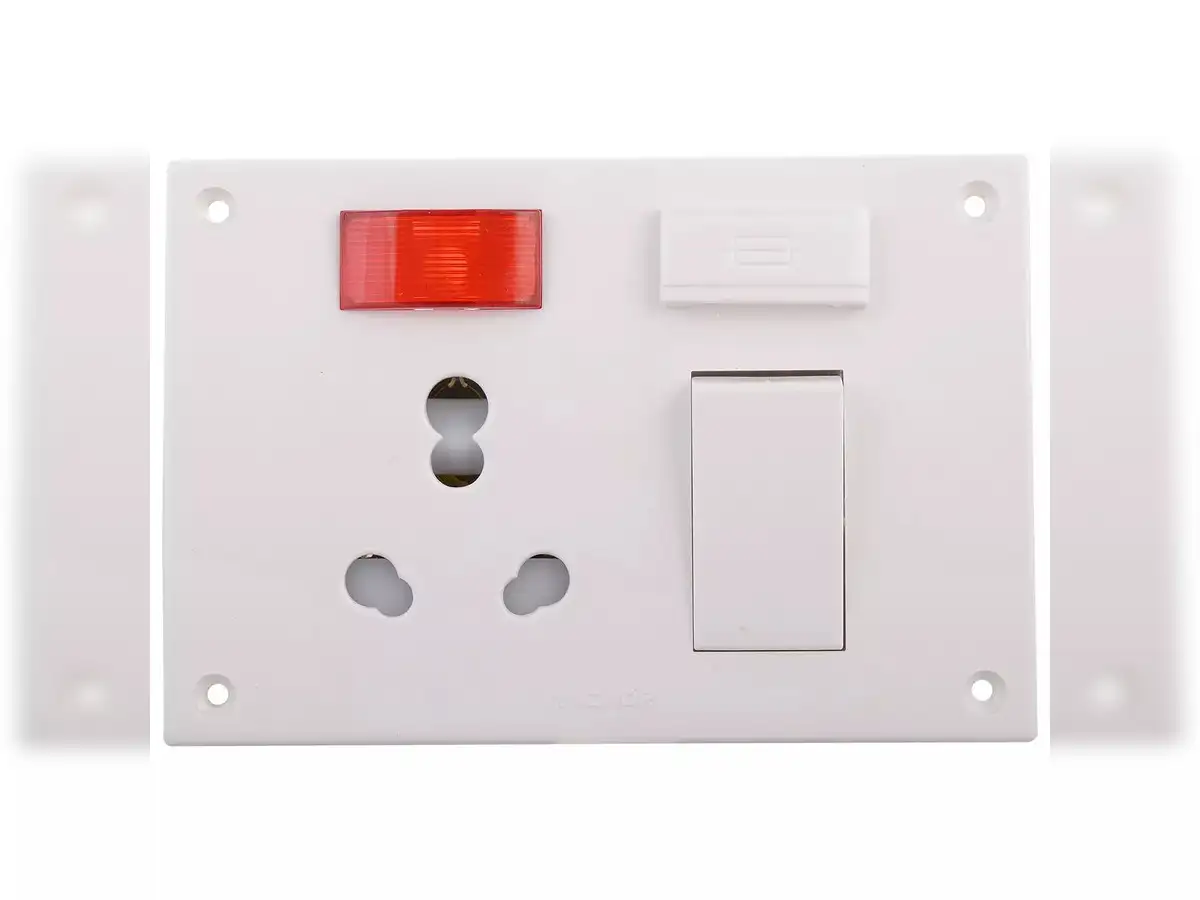 The Anchor 20 A Penta 5-in-1 Switch comes with a socket, a switch, a safety shutter, an indicator light, and a fuse. It also has 4 screw holes which ensures a secure fitting. Also, it is rated at 20 Amps which is a very high current rating, and is suitable for handling heavy electrical loads, making it suitable for various applications in households, offices, shops, restaurants, hospitals, and more. Since it is made from polycarbonate, it is a durable and long-lasting socket.