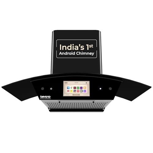 The Beyond Appliances Asteria 90cm Auto Clean Kitchen Chimney is a smart and futuristic addition to modern modular kitchens, offering both performance and entertainment. With an impressive 1408 CMH suction capacity, this chimney efficiently eliminates smoke, grease, and odours, perfect for Indian cooking styles. Its filterless design ensures easy maintenance, while the dry heat auto-clean feature keeps the interior clean with minimal effort. The sleek curved glass black finish adds a touch of elegance, complemented by energy-efficient LED lighting. What truly sets this chimney apart is its built-in Android touchscreen and 5W speakers, allowing you to stream music, watch videos, or even set reminders while you cook.