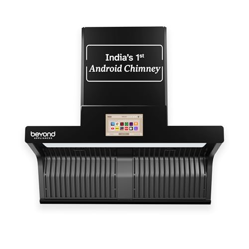 The Beyond Appliance Orion 90 cm chimney features a highly efficient 1600 CMH suction and can interact with you as you cook; therefore, it provides a truly interactive cooking experience. The filterless chimney is supplied with an auto-clean system that needs little maintenance, and a large infotainment touchscreen with a built-in speaker gives you added entertainment and functionality. The Beyond Appliance Orion 90 cm chimney uses high-performance motors and has a sleek finish in black, providing both high performance and innovative solutions while looking good in today’s kitchen.