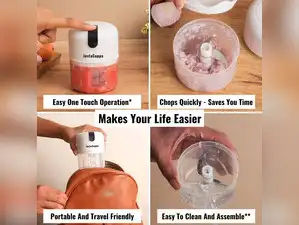 This is Instacuppa electric chopper that comes with stainless steel blades. This mini chopper is very easy to use, you just have to put the ingredients in the jar, close the lid, and press the ON button, and that's it. Your ingredients are ready to cook.