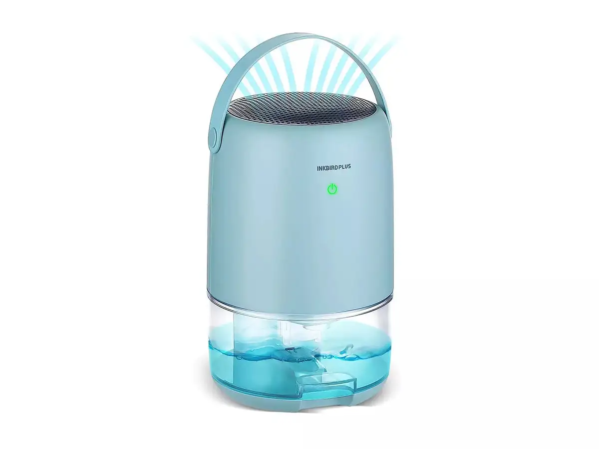 INKBIRDPLUS Home Dehumidifier Portable Capacity 300ml/d (30℃ RH80%) 1100ml Water Tank Quiet Dehumidifiers for Office Bedroom 2 Mode 7 Color LED Light Auto Off Ideal for Closet Bathroom Basement