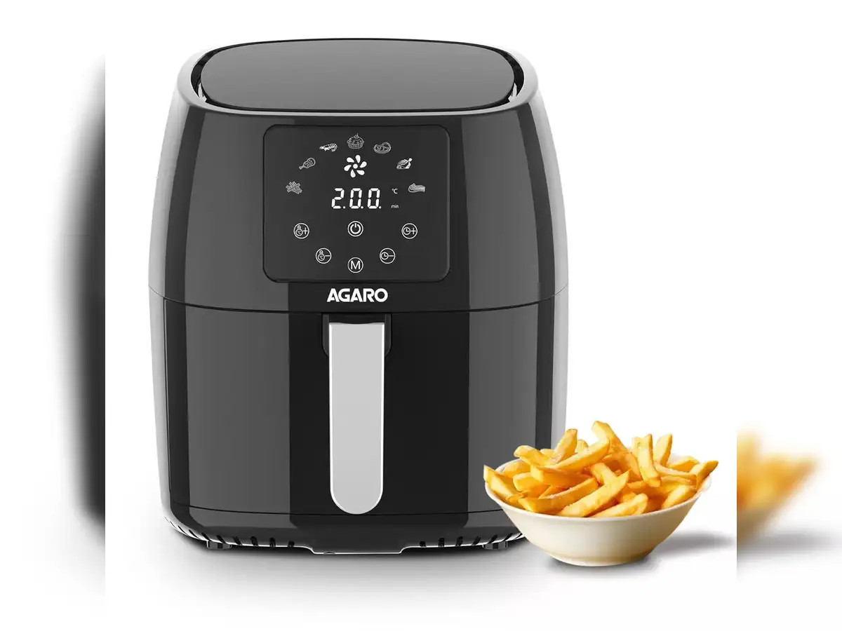 AGARO Sapphire Digital Air Fryer For Home, 4.5L, Electric Air Fryer Oven, 1400W, 7 Preset Programs, 360° Air Circulation, Convection Oven, Digital touch Display, Fry, Bake, Roast, Toast, Black.