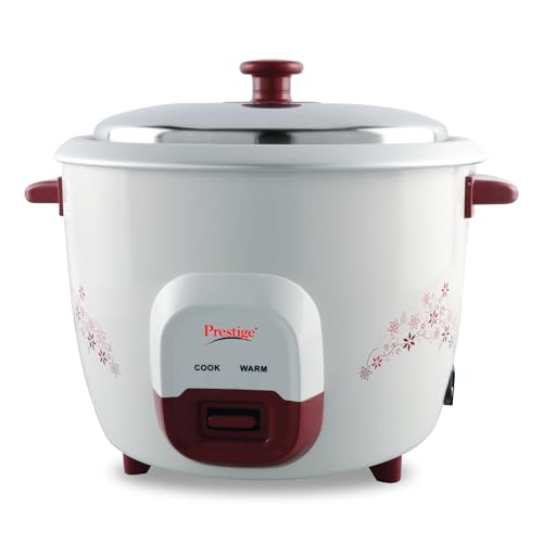 The Prestige rice cooker features a durable double-wall body that protects against dents and enhances longevity. With a 1.8-litre capacity and a powerful 700-watt motor, it can cook up to 1 kg of rice and other dishes like porridge, soup, pulao, idlis, and vegetable stew. The Prestige rice cooker includes convenient features like cool-touch handles, a detachable power cord, and a close-fit stainless steel lid with a steam vent to prevent overflow. Its control switch lever automatically shifts the cooker to “Warm” mode after cooking, keeping food fresh and warm for up to 4 hours, making it user-friendly and practical for everyday use.