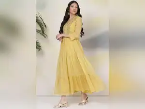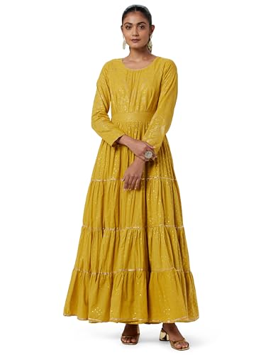 - BIBA Women's Poly Chanderi Tired Maxi Dress
