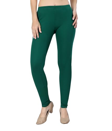 TRASA Women's High Rise Slim Fit Ultra Soft Cotton Churidar Leggings - Forest Green, Size :- XX-Large