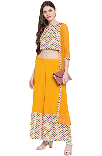 7. Janasya Women's Yellow Crop Top with Palazzo and Jacket