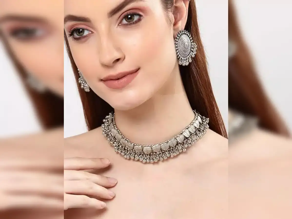 10. Shining Diva Fashion Oxidised Silver Necklace Jewellery Set