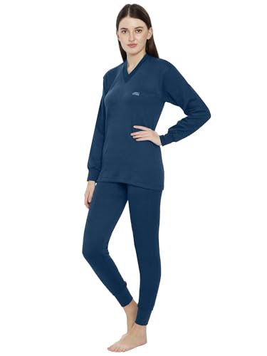 Lux Cottswool Women's V-Neck Thermal Top & Lower Set – Warm Innerwear for Winter, Soft & Comfortable Cotton Wool, Full Sleeve Top with Matching Bottom. Set of 1. (Blue_85CM)