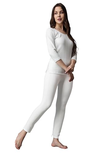FF Winter Wear Thermal Upper Vest and Bottom Lower Warmer Combo for Women Long Johns Underwear Set Color - White (Size - Extra Large)