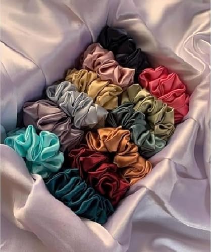 SIMMI Classic Satin Silk Scrunchies For Women And Girls Set Of 12 Scrunchie for Less Hair fall Hairbands Rubber Band Scrunchies For Girls Best Gift For Mom, Sister And Girlfriend