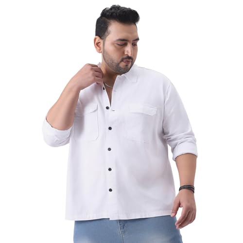 Urbano Plus Men's White Cotton Full Sleeve Relaxed Fit Shacket with Utility Pockets (plusshacketsolp-01-white-5xl)