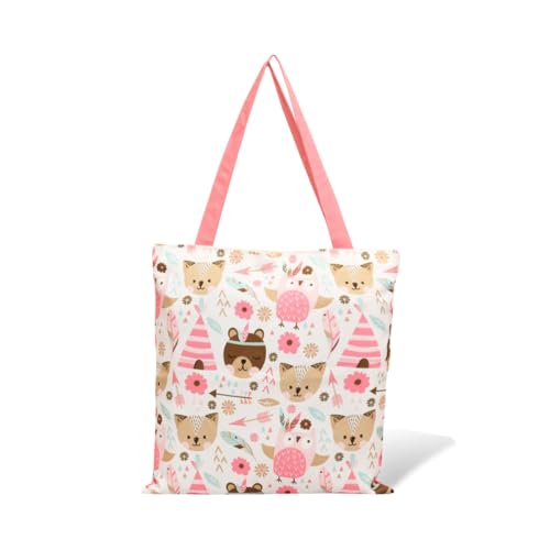 The Purple Tree Canvas Stylish Printed Tote Bag for Women is a chic and practical accessory for everyday use. Made from durable canvas with a satin inner lining, this tote bag boasts a spacious size of 15 x 16 inches, providing ample room for all your essentials. Featuring a double handle strap for comfortable carrying and a convenient zipper closure, it ensures your belongings stay secure on the go. The bag is designed with a stylish animal print in pink and brown on a white background, adding a touch of elegance to your ensemble. Overall, this tote bag is the perfect choice for fashion-forward women seeking a functional tote bag under 500.