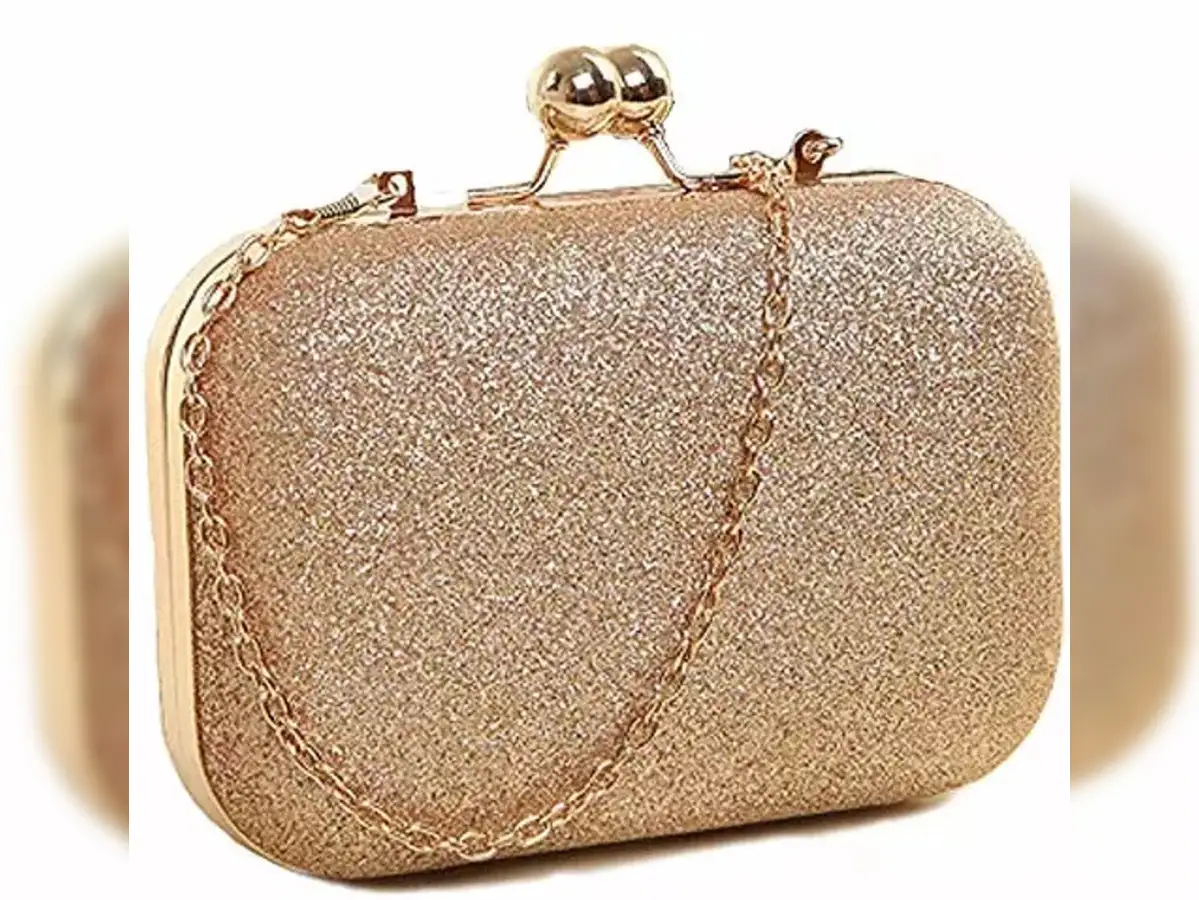 You can enrich your look with this Clutch bag. This offers handbags in every style, shape, and color. It is made up of sparkling gold-colored synthetic material and a Clasp closure. It’s a perfect accessory for all your outfits. You can match this with pair of heels to give it a complete party look.