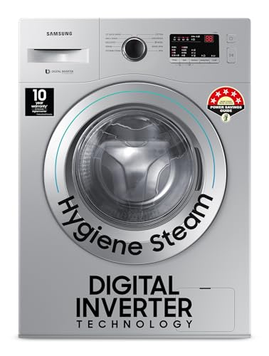 Samsung 7 KG, 5 star, Hygiene Steam with Inbuilt Heater, LED Display, Diamond Drum, Fully-Automatic Front Load Washing Machine with 20 years warranty on Digital Inverter(WW70R20GLSS/TL, DA SILVER)