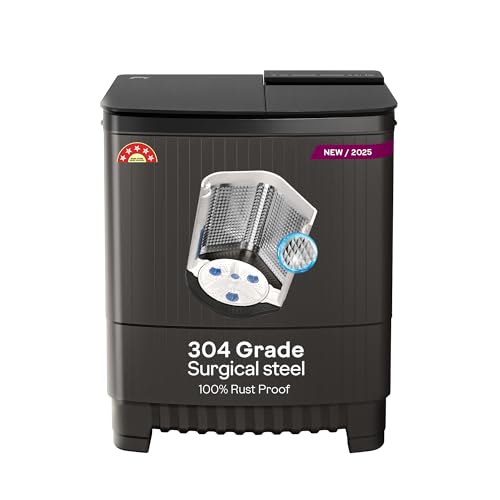 The Storm Force Pulsator of this machine provides heavy water action that removes tough stains easily and the 1440 RPM spin speed of this machine helps to remove excess water, which dries clothes quickly. This machine has a rust-proof polypropylene body and a toughened glass top that is stylish and durable in Graphite Grey.