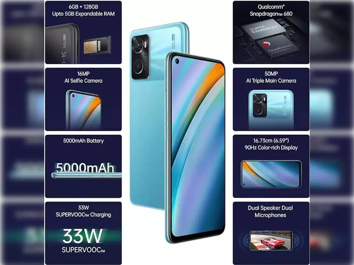 Ans. The Oppo K10 features a 6.59-inch Full HD+ display with a resolution of 1080 x 2412 pixels, offering vibrant visuals.4. Does the Oppo K10 support expandable storage?