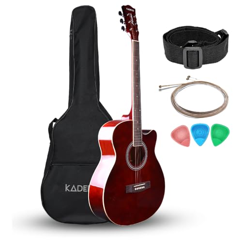 Kadence FNTR-BRN Frontier 40" Acoustic Guitar | Grand Auditorium Cutaway | Comes with Bag, Set Of Strings, Strap, Picks | Includes Learning Course | Glossy Wine Red