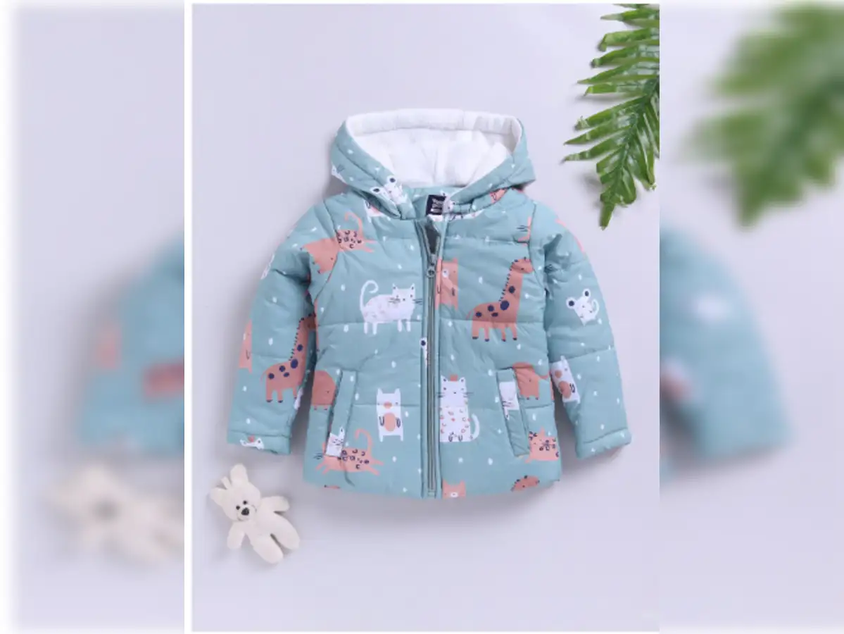 Buy Now The Toonyport Hooded Graphic Printed Puffer Jacket is an adorable baby girl jacket designed to keep little ones warm and stylish. This green unisex puffer features long sleeves, a hood, and a straight hemline, making it practical and cozy for daily wear. The cute whimsical animal print adds a playful touch that children will love, while the polyester lining ensures comfort and insulation. With a zip closure and two side pockets, it combines functionality with charm, making it a versatile girl’s puffer jacket suitable for casual outings, playdates, or chilly outdoor adventures.