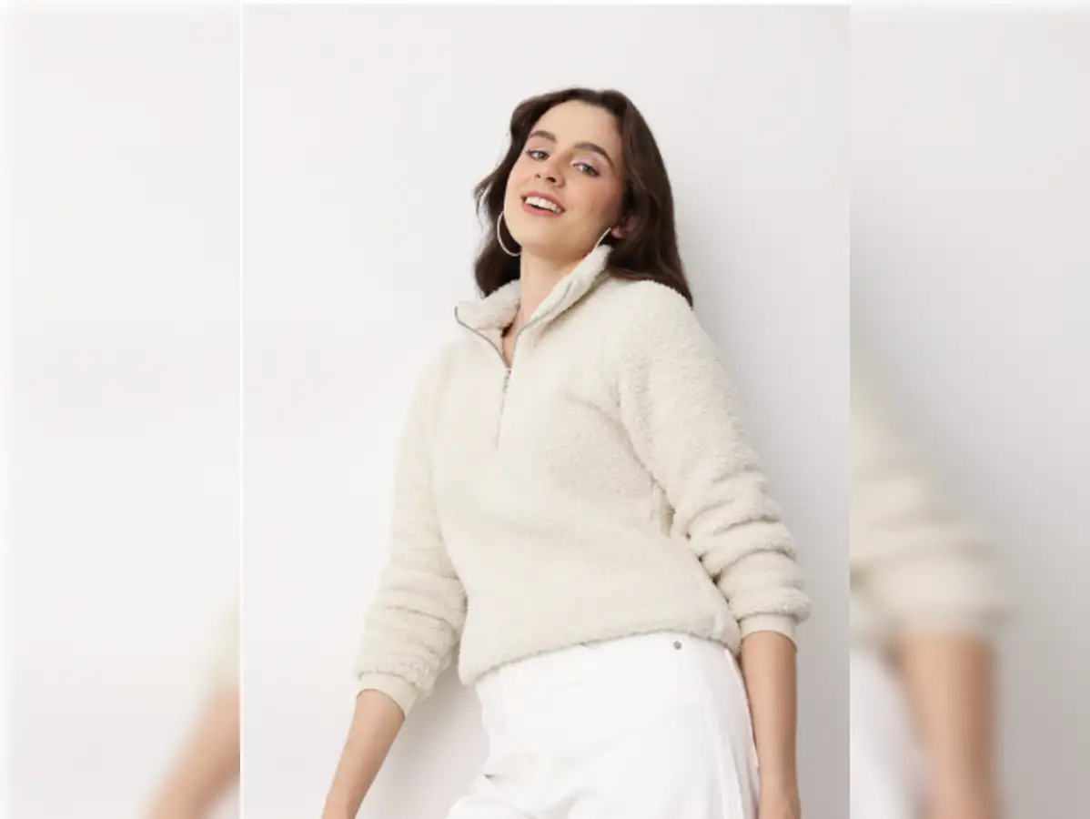 Buy Now The Mast & Harbour Mock Collar Half-Zippered Sherpa Sweatshirt delivers a plush, snuggly feel perfect for chilly days, making it an ideal choice for anyone seeking an affordable women’s sweatshirt without compromising on comfort or style. Crafted from soft 100% polyester sherpa, it features a cozy mock collar with a half-zip closure, ribbed hem, and ribbed sleeves that help lock in warmth. Its clean off-white colour and regular fit make it a versatile winter staple that pairs effortlessly with jeans, joggers, or leggings.