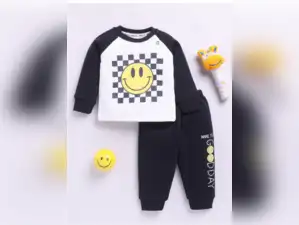 1. YK X Tinyo Infant Boys Smiley Printed Fleece T-shirt with Joggers