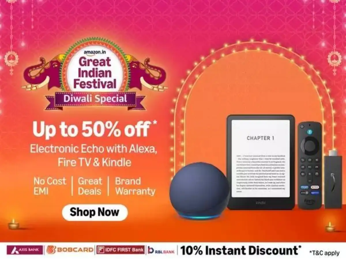 The Amazon Great Indian Festival 2025 – Diwali Special is here, bringing unbeatable offers on your favourite smart devices! This festive season, transform your home into a connected space with up to 50% off on Echo smart speakers with Alexa, Fire TV sticks, and Kindle e-readers. Whether you’re streaming your favourite shows, controlling your home with voice commands, or reading on the go, Amazon’s exclusive devices make it all effortless. That’s not all — enjoy special bank offers and instant discounts with Axis Bank, BOBcard, IDFC First Bank, and RBL Bank, making your festive shopping more rewarding. With deals that combine innovation, convenience, and savings, the Great Indian Festival 2025 is your one-stop destination for tech and joy. Light up your Diwali with smart savings and bring home the perfect blend of tradition and technology