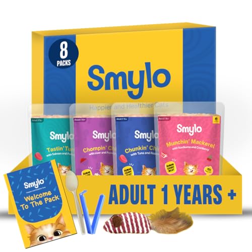 Smylo Natural Healthy Adult Cat Wet Food Trial Box (1+ Yrs) 70g x 8 Packs | Chicken, Tuna, Mackerel and Chicken & Tuna Recipes | Grain Free, No Preservatives & by-Products | Vet-Formulated