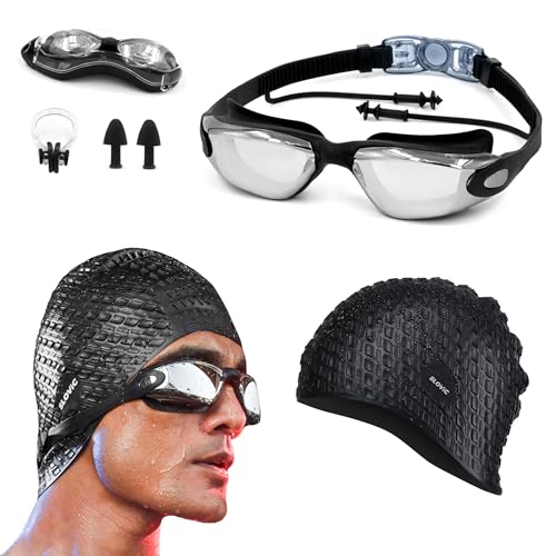 6. SLOVIC Black Swimming Goggles Caps