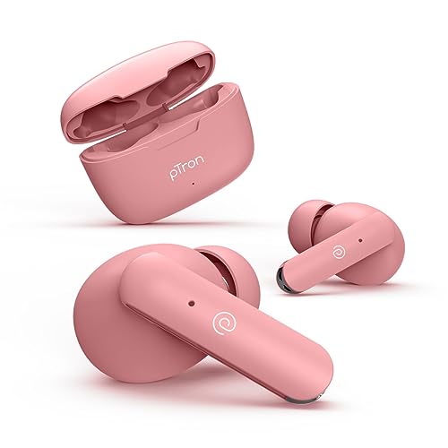 pTron Bassbuds Duo in-Ear Wireless Earbuds, Immersive Sound, 32Hrs Playtime, Clear Calls TWS Earbuds, Bluetooth V5.1 Headphone, Type-C Fast Charging, Voice Assist & IPX4 Water Resistant (Light Pink)