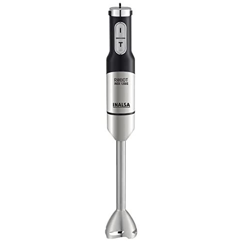 INALSA Electric Hand Blender Robot Inox 1200S|1200Watt 100% Copper Motor|Variable 20 Speed And Turbo Function|Low Noise|ANTI-SPLASH TECHNOLOGY|Home&kitchen|For Smoothie,Puree & Baby Food|2 Yr Warranty