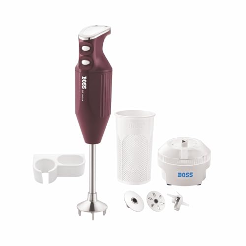 BOSS Stainless Steel Big Boss Portable Hand Blender | Powerful 275 W Motor | 5 Years Warranty* First In India | Variable Speed Control | Isi-Marked, Wine, 275 Watts
