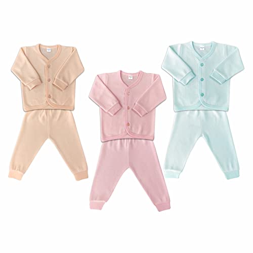 superminis Baby Thermal Top and Pyjama Set - Front Open, Full Sleeves, Winter Wear Suit for Infants, Girls, Boys, Pack of 3 (3-6 Months)