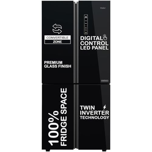 Haier 531 L, 100% Convertible, Twin Inverter, Frost Free French Door Refrigerator (HRB-550KG, Black Glass)